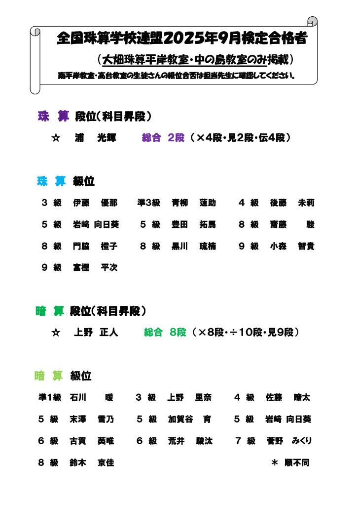 2025年9月検定合格者